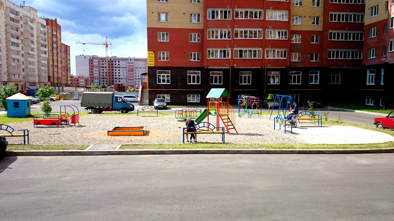 ✔ новая детская площадка напротив входа