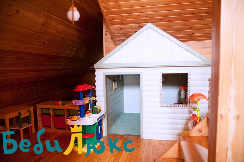 Спальни, игровые, класс для занятий и столовая в отдельных комнатахПлощадка с покрытием из резиновой крошки, огромная песочница для игр